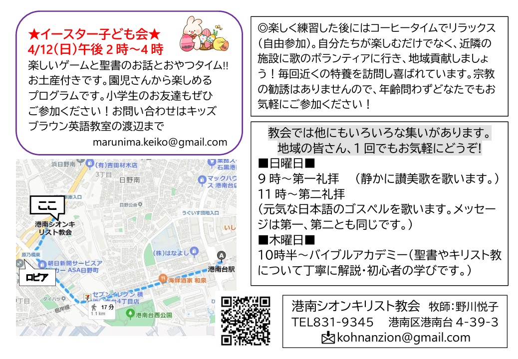 賛美と生命にあふれる「港南シオンキリスト教会」はあなたをお待ちしています!